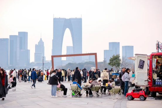 線下,商務(wù)區(qū)各大商貿(mào)載體同步發(fā)力、多點(diǎn)開花,蘇州中心、誠品生活、新光天地、久光百貨、金雞湖天虹等轄區(qū)商圈,精心開展新春促銷活動(dòng),推出年貨市集、新春福袋、心意贈(zèng)禮等多項(xiàng)福利,結(jié)合非遺藝術(shù)展、年俗文化節(jié)等主題活動(dòng),營造濃厚新春消費(fèi)氛圍,撬動(dòng)文旅消費(fèi)持續(xù)增長。
