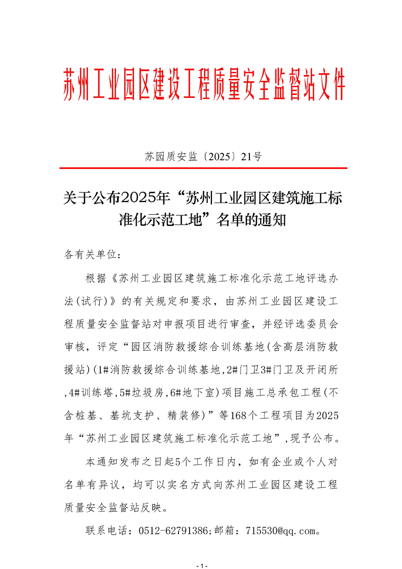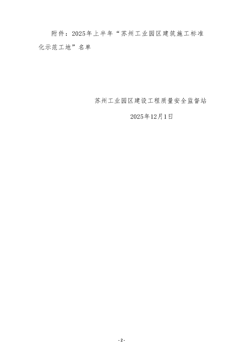 關于公布2025年“蘇州工業園區建筑施工標準化示范工地”名單的通知