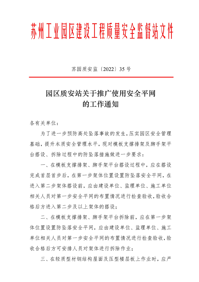 園區質安站關于推廣使用安全平網的工作通知