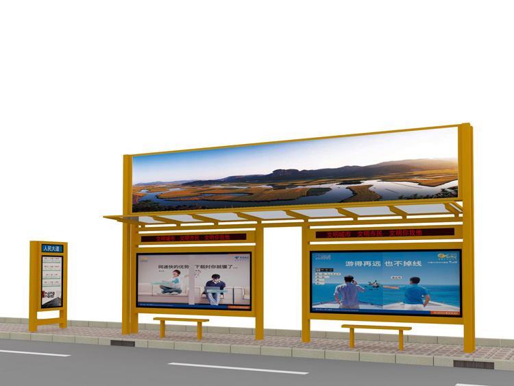 公交車候車亭一般是與公交站牌相配套的,為方便公交乘客候車時遮陽、防雨等,在車站、道路兩旁或綠化帶的港灣式公交停靠站上建設的交通設施。由于城市公交的日益發(fā)達,候車亭已發(fā)展成為城市一個不可或缺的重要組成部分,設計精美的候車亭也成為了城市一道美麗的風景。 一般候車亭棚體主要頂棚、立柱、頂弓、廣告燈箱和坐凳組成,也有用隔板來代替廣告燈箱的。
