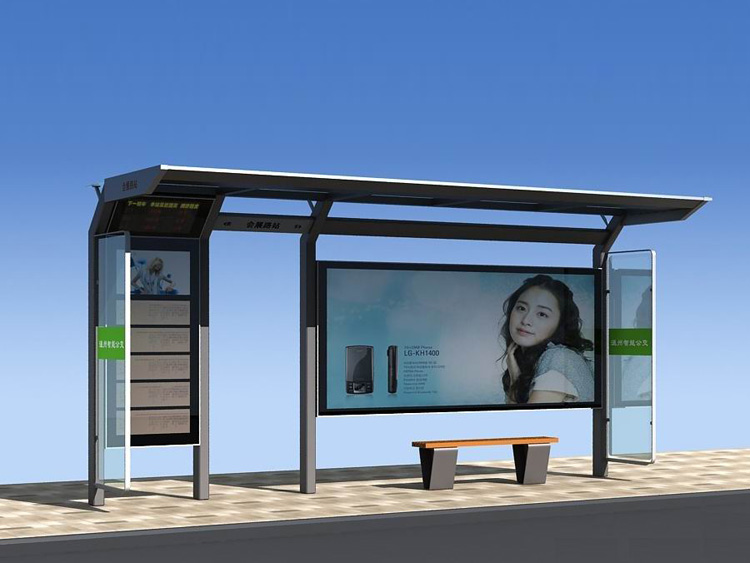 公交車候車亭一般是與公交站牌相配套的,為方便公交乘客候車時遮陽、防雨等,在車站、道路兩旁或綠化帶的港灣式公交?空旧辖ㄔO的交通設施。由于城市公交的日益發達,候車亭已發展成為城市一個不可或缺的重要組成部分,設計精美的候車亭也成為了城市一道美麗的風景。 一般候車亭棚體主要頂棚、立柱、頂弓、廣告燈箱和坐凳組成,也有用隔板來代替廣告燈箱的。