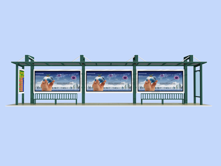 公交車候車亭一般是與公交站牌相配套的,為方便公交乘客候車時遮陽、防雨等,在車站、道路兩旁或綠化帶的港灣式公交停靠站上建設的交通設施。由于城市公交的日益發達,候車亭已發展成為城市一個不可或缺的重要組成部分,設計精美的候車亭也成為了城市一道美麗的風景。 一般候車亭棚體主要頂棚、立柱、頂弓、廣告燈箱和坐凳組成,也有用隔板來代替廣告燈箱的。