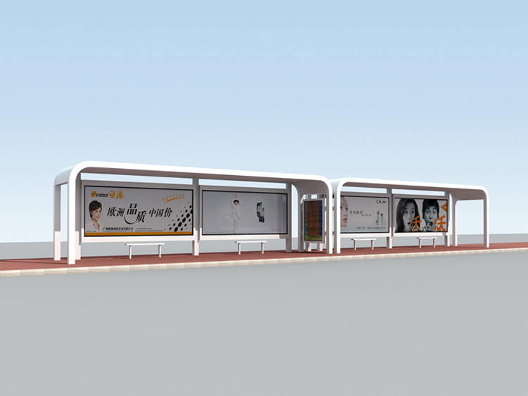公交車候車亭一般是與公交站牌相配套的,為方便公交乘客候車時遮陽、防雨等,在車站、道路兩旁或綠化帶的港灣式公交停靠站上建設的交通設施。由于城市公交的日益發達,候車亭已發展成為城市一個不可或缺的重要組成部分,設計精美的候車亭也成為了城市一道美麗的風景。 一般候車亭棚體主要頂棚、立柱、頂弓、廣告燈箱和坐凳組成,也有用隔板來代替廣告燈箱的。