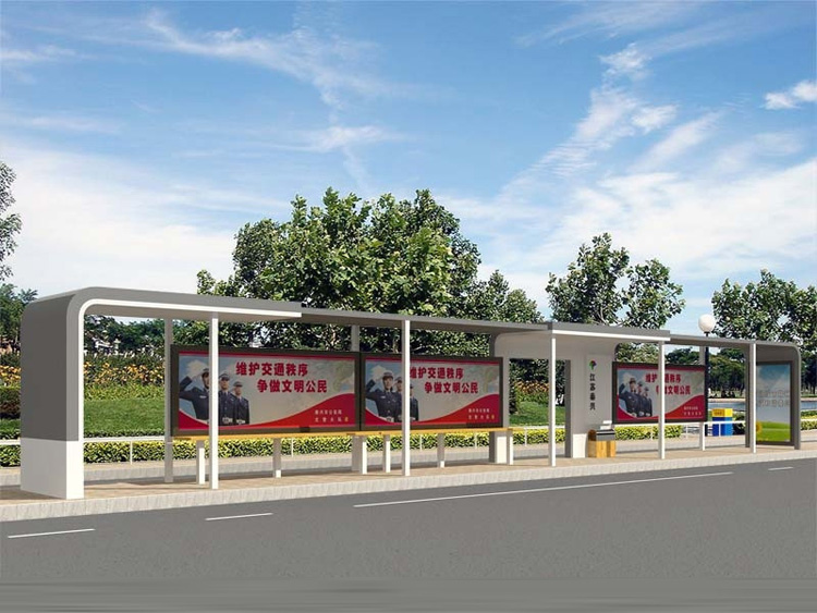 公交車候車亭一般是與公交站牌相配套的,為方便公交乘客候車時遮陽、防雨等,在車站、道路兩旁或綠化帶的港灣式公交停靠站上建設(shè)的交通設(shè)施。由于城市公交的日益發(fā)達(dá),候車亭已發(fā)展成為城市一個不可或缺的重要組成部分,設(shè)計精美的候車亭也成為了城市一道美麗的風(fēng)景。 一般候車亭棚體主要頂棚、立柱、頂弓、廣告燈箱和坐凳組成,也有用隔板來代替廣告燈箱的。