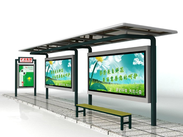 公交車候車亭一般是與公交站牌相配套的,為方便公交乘客候車時(shí)遮陽、防雨等,在車站、道路兩旁或綠化帶的港灣式公交停靠站上建設(shè)的交通設(shè)施。由于城市公交的日益發(fā)達(dá),候車亭已發(fā)展成為城市一個(gè)不可或缺的重要組成部分,設(shè)計(jì)精美的候車亭也成為了城市一道美麗的風(fēng)景。 一般候車亭棚體主要頂棚、立柱、頂弓、廣告燈箱和坐凳組成,也有用隔板來代替廣告燈箱的。