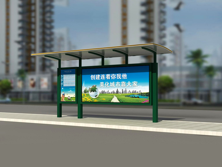 公交車候車亭一般是與公交站牌相配套的,為方便公交乘客候車時遮陽、防雨等,在車站、道路兩旁或綠化帶的港灣式公交停靠站上建設的交通設施。由于城市公交的日益發達,候車亭已發展成為城市一個不可或缺的重要組成部分,設計精美的候車亭也成為了城市一道美麗的風景。 一般候車亭棚體主要頂棚、立柱、頂弓、廣告燈箱和坐凳組成,也有用隔板來代替廣告燈箱的。