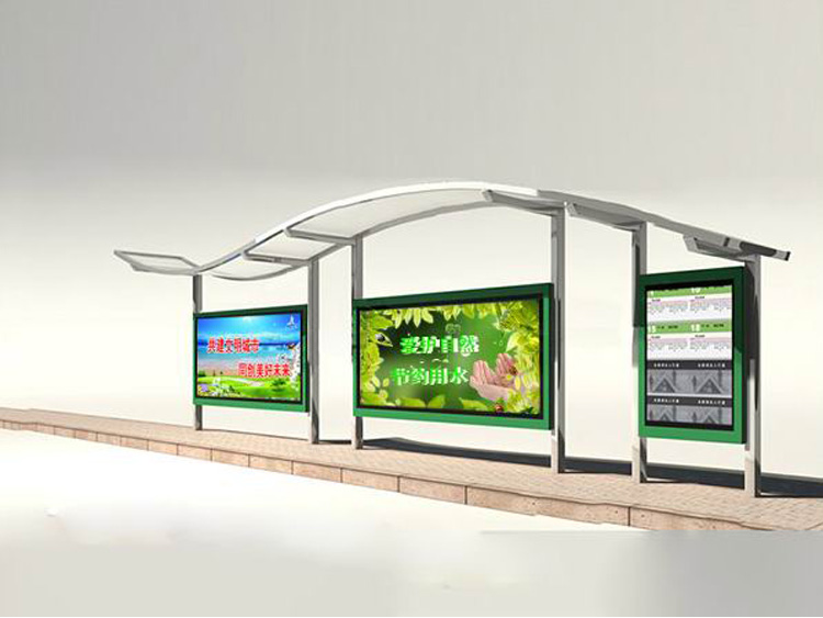 公交車候車亭一般是與公交站牌相配套的,為方便公交乘客候車時(shí)遮陽、防雨等,在車站、道路兩旁或綠化帶的港灣式公交停靠站上建設(shè)的交通設(shè)施。由于城市公交的日益發(fā)達(dá),候車亭已發(fā)展成為城市一個(gè)不可或缺的重要組成部分,設(shè)計(jì)精美的候車亭也成為了城市一道美麗的風(fēng)景。 一般候車亭棚體主要頂棚、立柱、頂弓、廣告燈箱和坐凳組成,也有用隔板來代替廣告燈箱的。