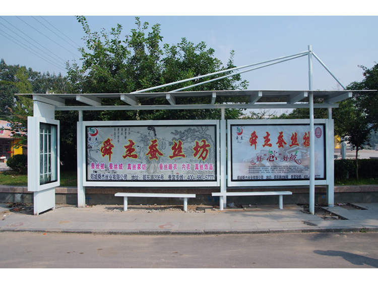 公交車候車亭一般是與公交站牌相配套的,為方便公交乘客候車時遮陽、防雨等,在車站、道路兩旁或綠化帶的港灣式公交停靠站上建設的交通設施。由于城市公交的日益發達,候車亭已發展成為城市一個不可或缺的重要組成部分,設計精美的候車亭也成為了城市一道美麗的風景。 一般候車亭棚體主要頂棚、立柱、頂弓、廣告燈箱和坐凳組成,也有用隔板來代替廣告燈箱的。