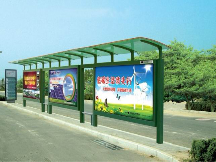 公交車候車亭一般是與公交站牌相配套的,為方便公交乘客候車時遮陽、防雨等,在車站、道路兩旁或綠化帶的港灣式公交停靠站上建設的交通設施。由于城市公交的日益發達,候車亭已發展成為城市一個不可或缺的重要組成部分,設計精美的候車亭也成為了城市一道美麗的風景。 一般候車亭棚體主要頂棚、立柱、頂弓、廣告燈箱和坐凳組成,也有用隔板來代替廣告燈箱的。