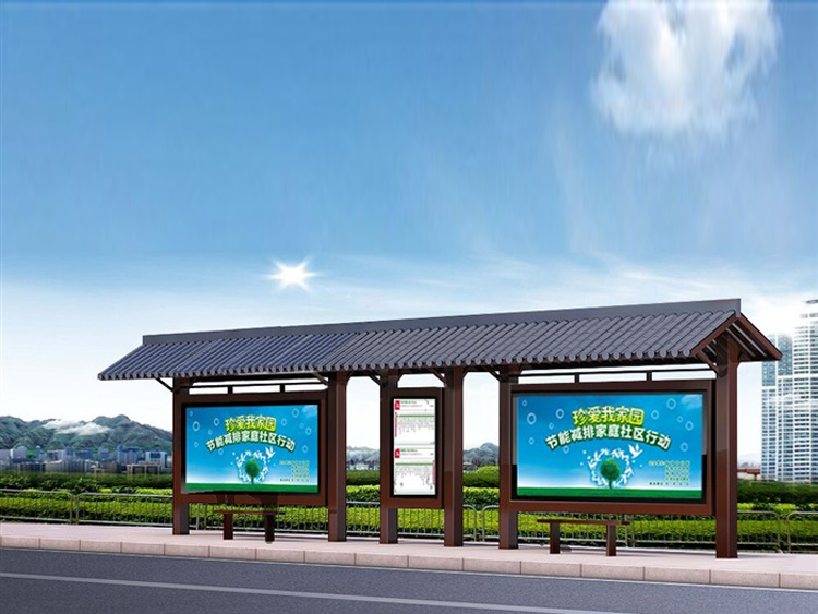 公交車候車亭一般是與公交站牌相配套的,為方便公交乘客候車時遮陽、防雨等,在車站、道路兩旁或綠化帶的港灣式公交停靠站上建設的交通設施。由于城市公交的日益發達,候車亭已發展成為城市一個不可或缺的重要組成部分,設計精美的候車亭也成為了城市一道美麗的風景。 一般候車亭棚體主要頂棚、立柱、頂弓、廣告燈箱和坐凳組成,也有用隔板來代替廣告燈箱的。