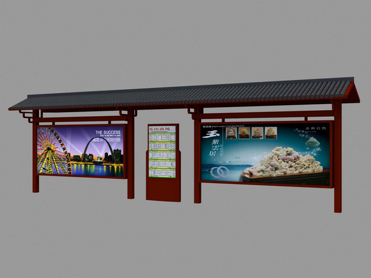 公交車候車亭一般是與公交站牌相配套的,為方便公交乘客候車時遮陽、防雨等,在車站、道路兩旁或綠化帶的港灣式公交停靠站上建設的交通設施。由于城市公交的日益發達,候車亭已發展成為城市一個不可或缺的重要組成部分,設計精美的候車亭也成為了城市一道美麗的風景。 一般候車亭棚體主要頂棚、立柱、頂弓、廣告燈箱和坐凳組成,也有用隔板來代替廣告燈箱的。