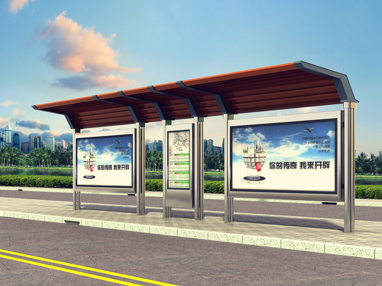 公交車候車亭一般是與公交站牌相配套的,為方便公交乘客候車時遮陽、防雨等,在車站、道路兩旁或綠化帶的港灣式公交停靠站上建設的交通設施。由于城市公交的日益發達,候車亭已發展成為城市一個不可或缺的重要組成部分,設計精美的候車亭也成為了城市一道美麗的風景。 一般候車亭棚體主要頂棚、立柱、頂弓、廣告燈箱和坐凳組成,也有用隔板來代替廣告燈箱的。