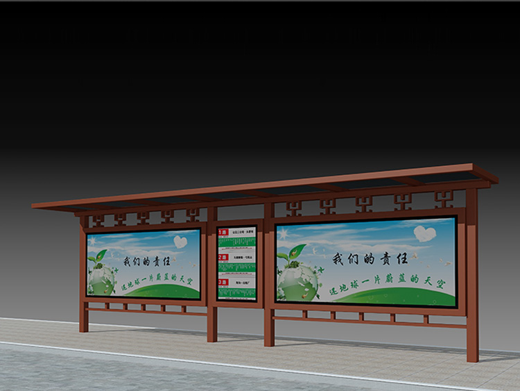 公交車候車亭一般是與公交站牌相配套的,為方便公交乘客候車時遮陽、防雨等,在車站、道路兩旁或綠化帶的港灣式公交停靠站上建設的交通設施。由于城市公交的日益發達,候車亭已發展成為城市一個不可或缺的重要組成部分,設計精美的候車亭也成為了城市一道美麗的風景。 一般候車亭棚體主要頂棚、立柱、頂弓、廣告燈箱和坐凳組成,也有用隔板來代替廣告燈箱的。