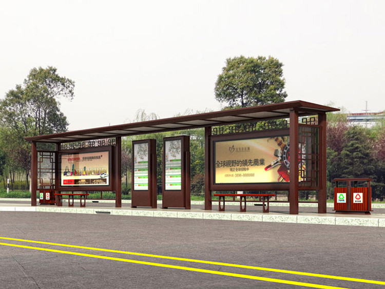 公交車候車亭一般是與公交站牌相配套的,為方便公交乘客候車時遮陽、防雨等,在車站、道路兩旁或綠化帶的港灣式公交?空旧辖ㄔO的交通設施。由于城市公交的日益發達,候車亭已發展成為城市一個不可或缺的重要組成部分,設計精美的候車亭也成為了城市一道美麗的風景。 一般候車亭棚體主要頂棚、立柱、頂弓、廣告燈箱和坐凳組成,也有用隔板來代替廣告燈箱的。