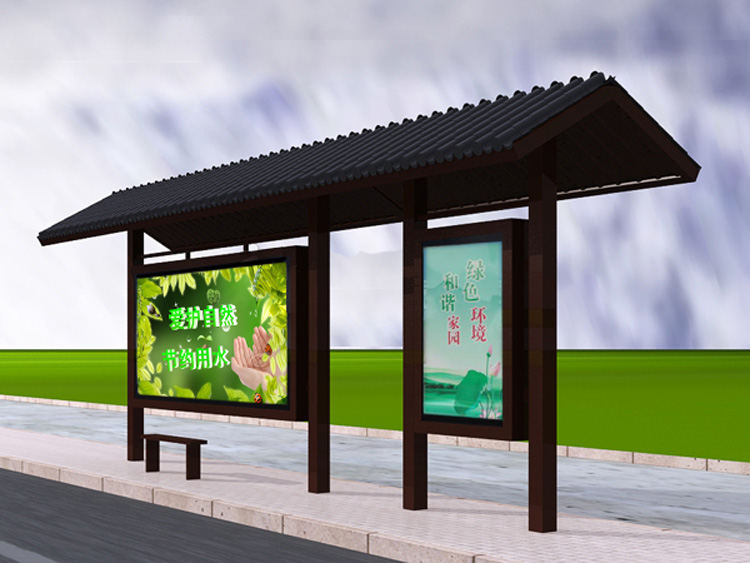 公交車候車亭一般是與公交站牌相配套的,為方便公交乘客候車時遮陽、防雨等,在車站、道路兩旁或綠化帶的港灣式公交停靠站上建設的交通設施。由于城市公交的日益發達,候車亭已發展成為城市一個不可或缺的重要組成部分,設計精美的候車亭也成為了城市一道美麗的風景。 一般候車亭棚體主要頂棚、立柱、頂弓、廣告燈箱和坐凳組成,也有用隔板來代替廣告燈箱的。