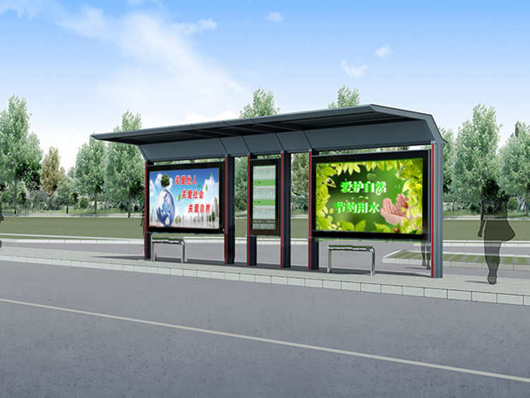 公交車候車亭一般是與公交站牌相配套的,為方便公交乘客候車時遮陽、防雨等,在車站、道路兩旁或綠化帶的港灣式公交?空旧辖ㄔO的交通設施。由于城市公交的日益發達,候車亭已發展成為城市一個不可或缺的重要組成部分,設計精美的候車亭也成為了城市一道美麗的風景。 一般候車亭棚體主要頂棚、立柱、頂弓、廣告燈箱和坐凳組成,也有用隔板來代替廣告燈箱的。