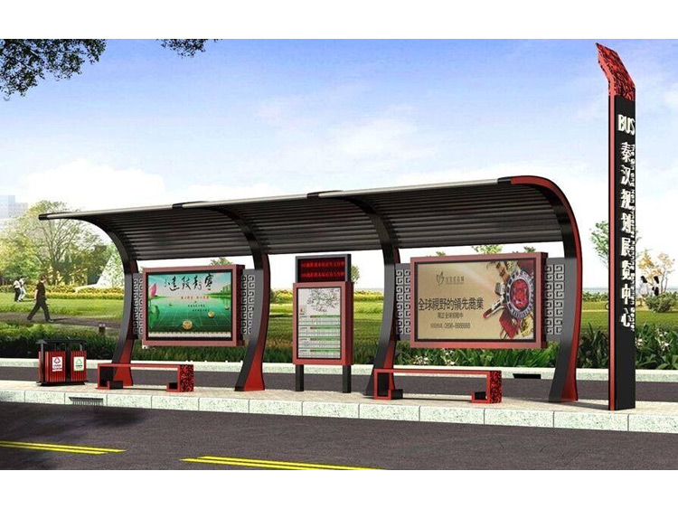 公交車候車亭一般是與公交站牌相配套的,為方便公交乘客候車時遮陽、防雨等,在車站、道路兩旁或綠化帶的港灣式公交?空旧辖ㄔO(shè)的交通設(shè)施。由于城市公交的日益發(fā)達,候車亭已發(fā)展成為城市一個不可或缺的重要組成部分,設(shè)計精美的候車亭也成為了城市一道美麗的風景。 一般候車亭棚體主要頂棚、立柱、頂弓、廣告燈箱和坐凳組成,也有用隔板來代替廣告燈箱的。