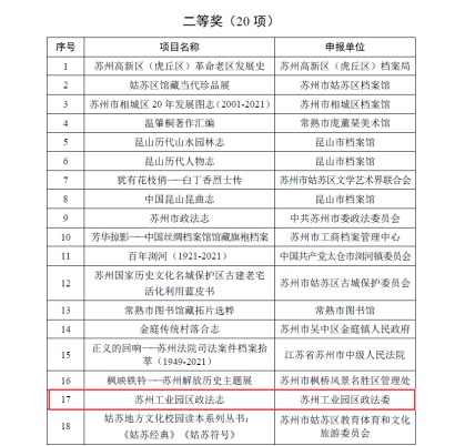 園區兩部志書獲評江蘇省史志作品優秀成果