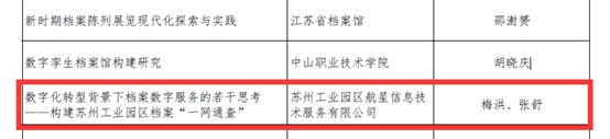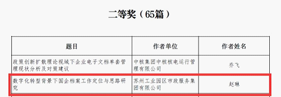 近日,2023 年全國青年檔案工作者學(xué)術(shù)論壇征文評(píng)選結(jié)果發(fā)布,蘇州市 8 篇論文獲獎(jiǎng)。其中,園區(qū) 2 篇論文分別獲評(píng)一等獎(jiǎng)和二等獎(jiǎng),占全市的1/4,居全市第一。