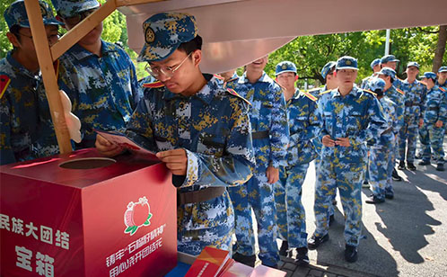 活動以“擺攤設點”的形式在校園內(nèi)展開,設置了普法宣傳區(qū)、互動答題區(qū)等區(qū)域。工作人員精心布置宣傳展架,展示了中華人民共和國國家安全法、宗教事務條例、反電信網(wǎng)絡詐騙法、禁毒法及相關(guān)毒品種類等與學生生活息息相關(guān)的法律法規(guī)知識。互動答題區(qū)的“答題有獎”環(huán)節(jié)吸引了大批學生積極參與,學生們熱情高漲,有序排隊答題。活動中,教官帶頭參與互動,不少答錯的學生主動重新排隊挑戰(zhàn),展現(xiàn)出濃厚的學習熱情。