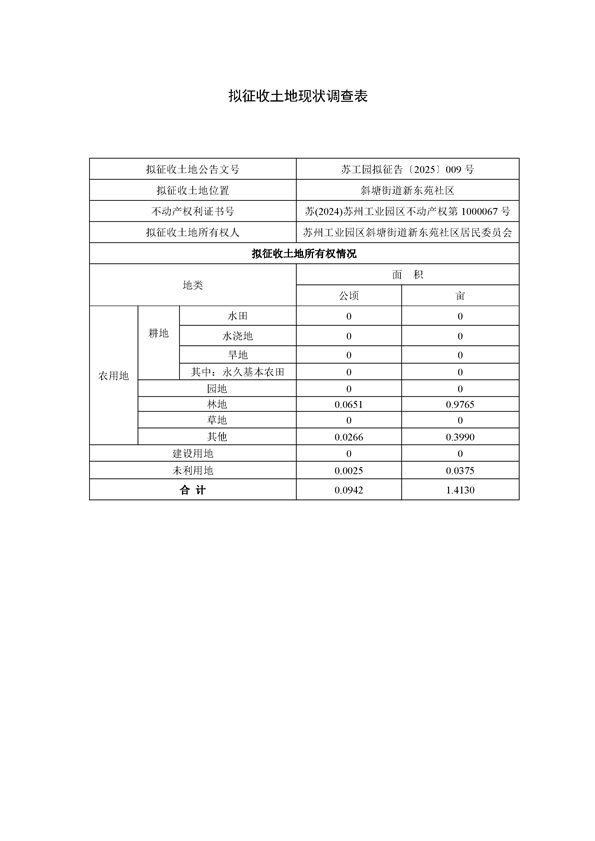 蘇州工業園區管理委員會征地補償安置方案公告(蘇工園征補安置〔2025〕007號)