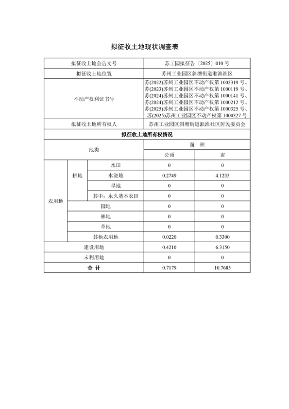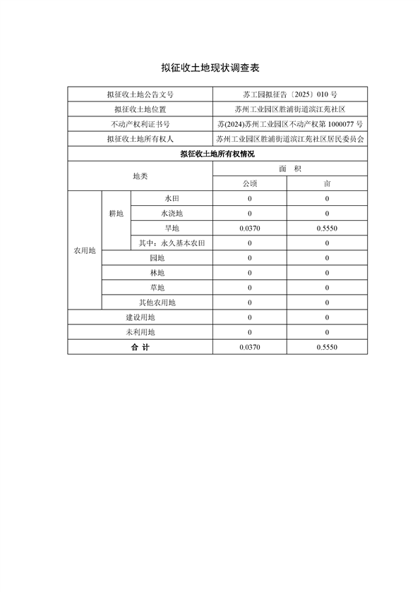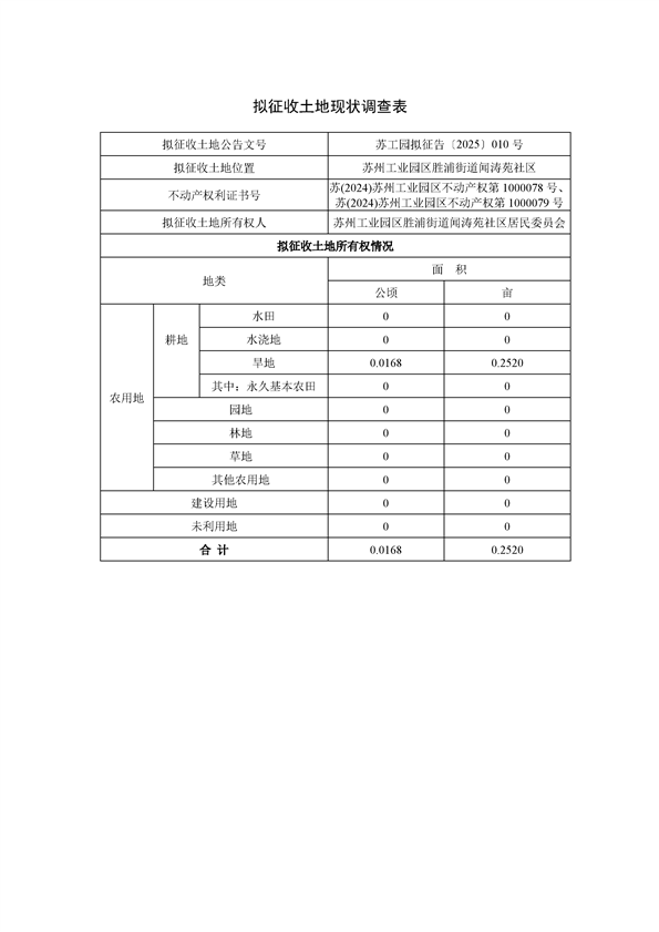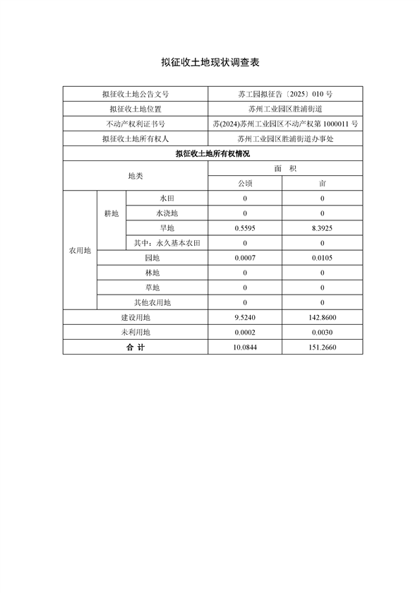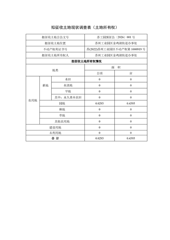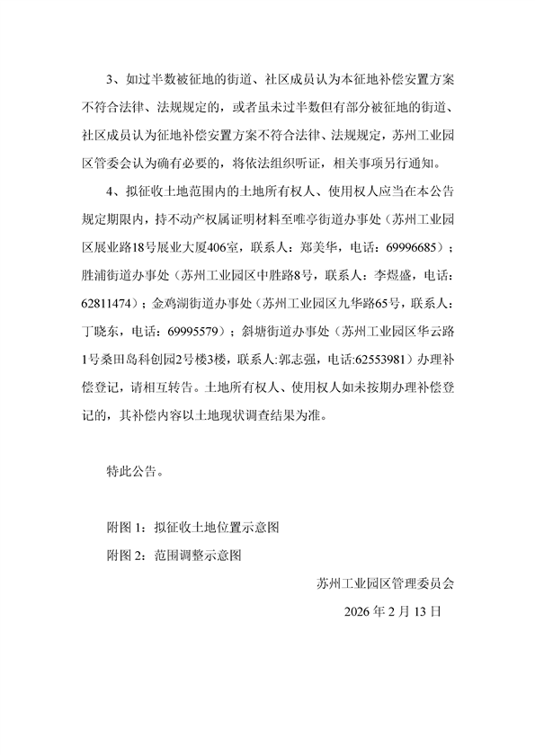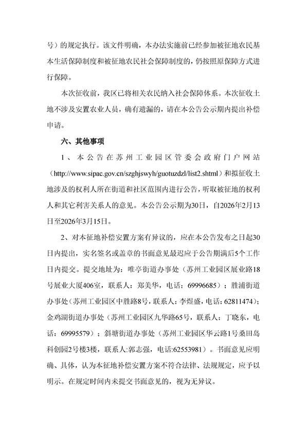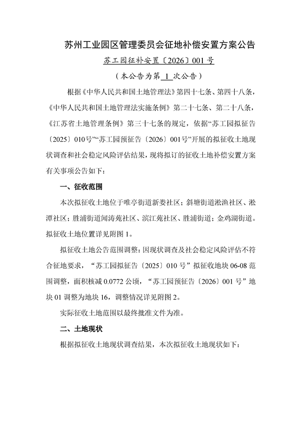 蘇州工業園區管理委員會征地補償安置方案公告(蘇工園征補安置〔2026〕001號)