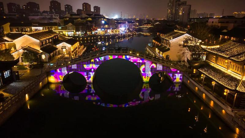 即日起至3月31日,每晚18:00-21:00,斜塘老街新春光影秀準時開啟,攬月橋畔“春啟新程,流光織夢”;懷夢街內“踏步生花,隨行綻焰”,沉浸式感受夢幻浪漫的元宵夜景。