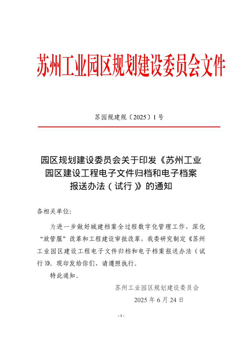 園區(qū)規(guī)劃建設(shè)委員會關(guān)于印發(fā)《蘇州工業(yè)園區(qū)建設(shè)工程電子文件歸檔和電子檔案報送辦法(試行)》的通知