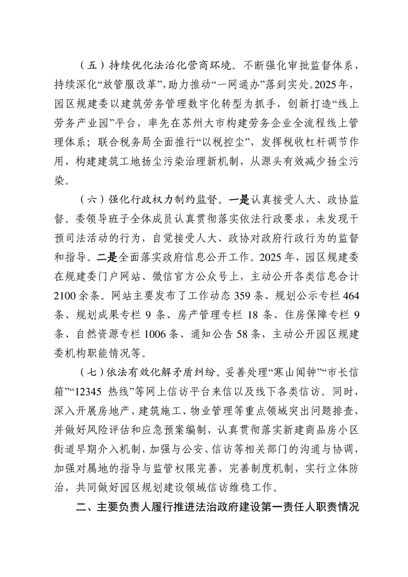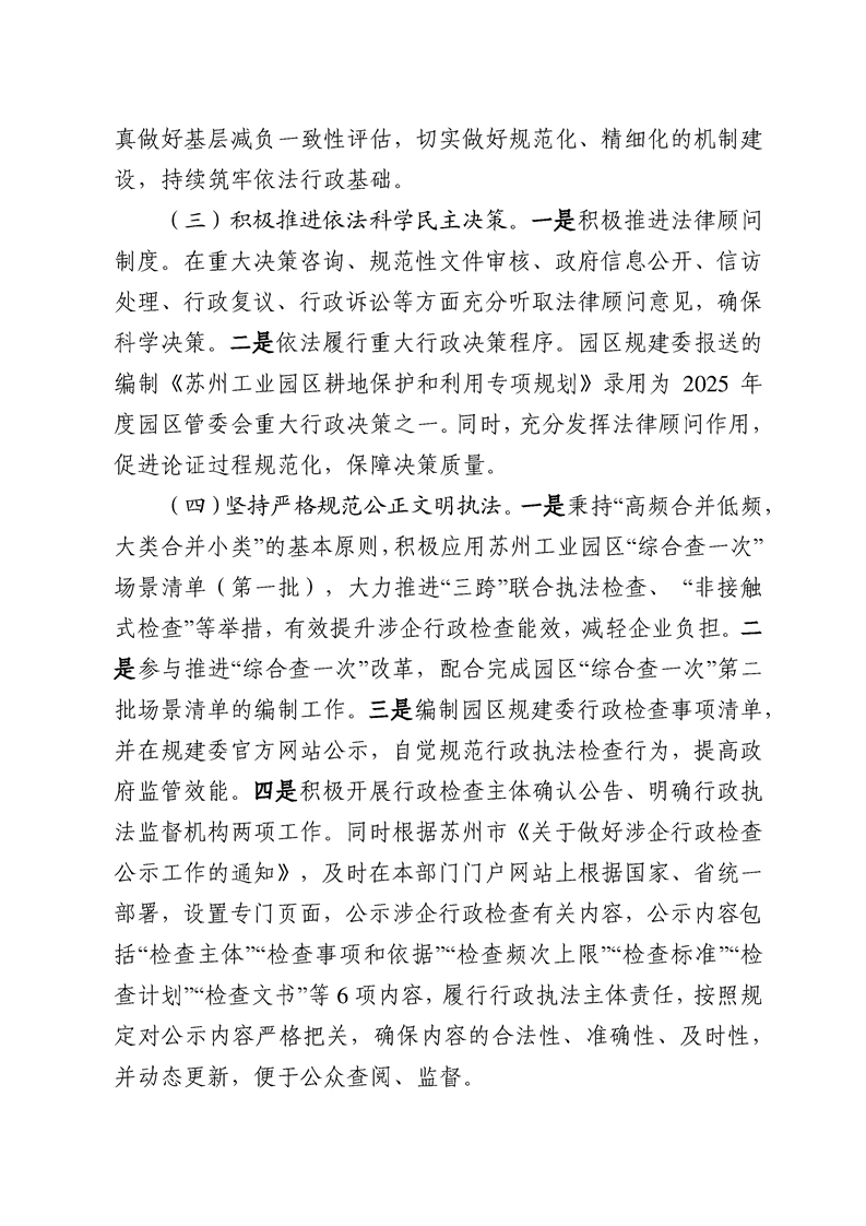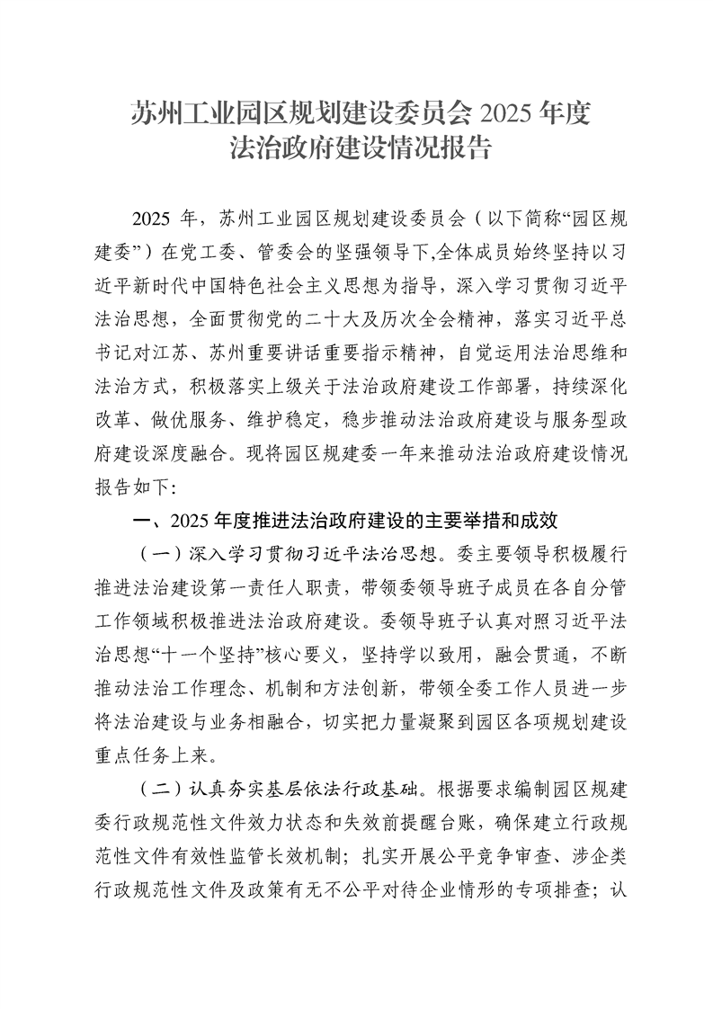 蘇州工業園區規劃建設委員會2025年度法治政府建設情況報告