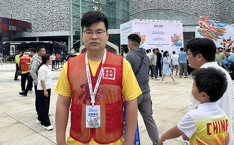 今年の金鶏湖端午ドラゴンボートレースには、企業(yè)、學(xué)校、社會(huì)団體からの260人余りのボランティアは競技場の最前線で秩序を維持し、交通案內(nèi)などを擔(dān)當(dāng)した。