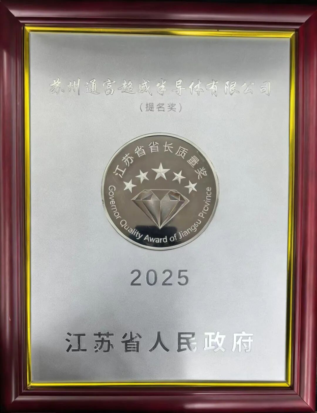 2月27日、江蘇省は2025年省長品質賞の受賞企業を発表し、蘇州通富超威半導體有限公司が省長品質賞提名賞を受賞した。