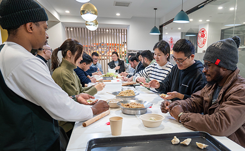 SKEMA蘇州分校では、フランス、ロシア、カメルーン共和國などの國からの40名の留學生は一堂に會し、沒入型で「福」の漢字を書き、餃子を作ることを體験し、春節にいっぱい特別感を添えた。