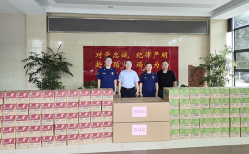 慰問組來到園區消防救援大隊,為消防救援人員送去清涼飲品和防暑物資,囑咐大家在保障人民安全的同時,也要注意自身的健康與安全。