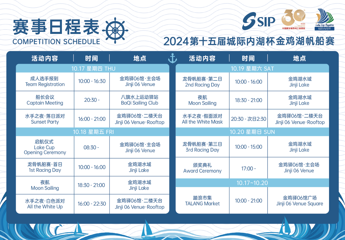 10月17日至20日,一年一度的城際內(nèi)湖杯金雞湖帆船賽在蘇州工業(yè)園區(qū)如約來襲。本屆賽事以“潮見蘇州,乘風(fēng)時刻”為主題,圍繞競技、體驗、娛樂三個面向,從專業(yè)辦賽、公益惠...