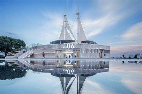 以新載體撬動(dòng)經(jīng)濟(jì)“新引擎”,正值園區(qū)開(kāi)發(fā)建設(shè)30周年,金雞湖驛站改造,是環(huán)金雞湖區(qū)域綜合提升工程中的重要舉措。本屆賽事啟航儀式首次在新開(kāi)放的金雞驛06館舉辦,依托絕佳打卡觀賽位將給參賽選手及觀賽者帶來(lái)全新體驗(yàn)。金雞驛06號(hào)驛站位于望湖角帆船碼頭,緊鄰金水灣棧橋,定位為集水上運(yùn)動(dòng)、餐飲和公共服務(wù)為一體的綜合服務(wù)設(shè)施。驛站頂部有一個(gè)巨型帆船雕塑,與湖邊停泊的點(diǎn)點(diǎn)帆船,構(gòu)成時(shí)尚美麗的城市風(fēng)景線。