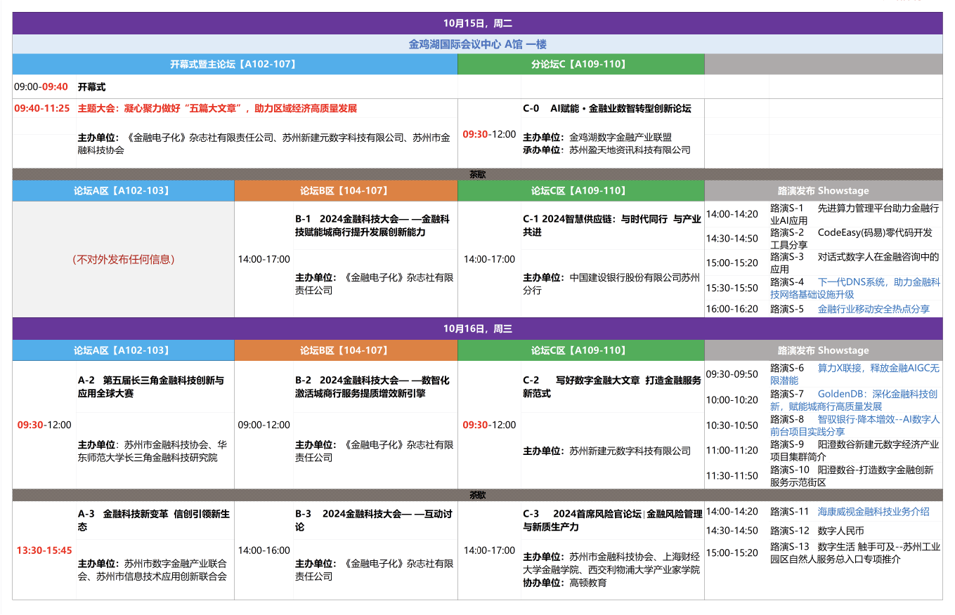 第六屆中新(蘇州)數(shù)字金融應(yīng)用博覽會(huì) | 2024金融科技大會(huì)論壇議程概覽