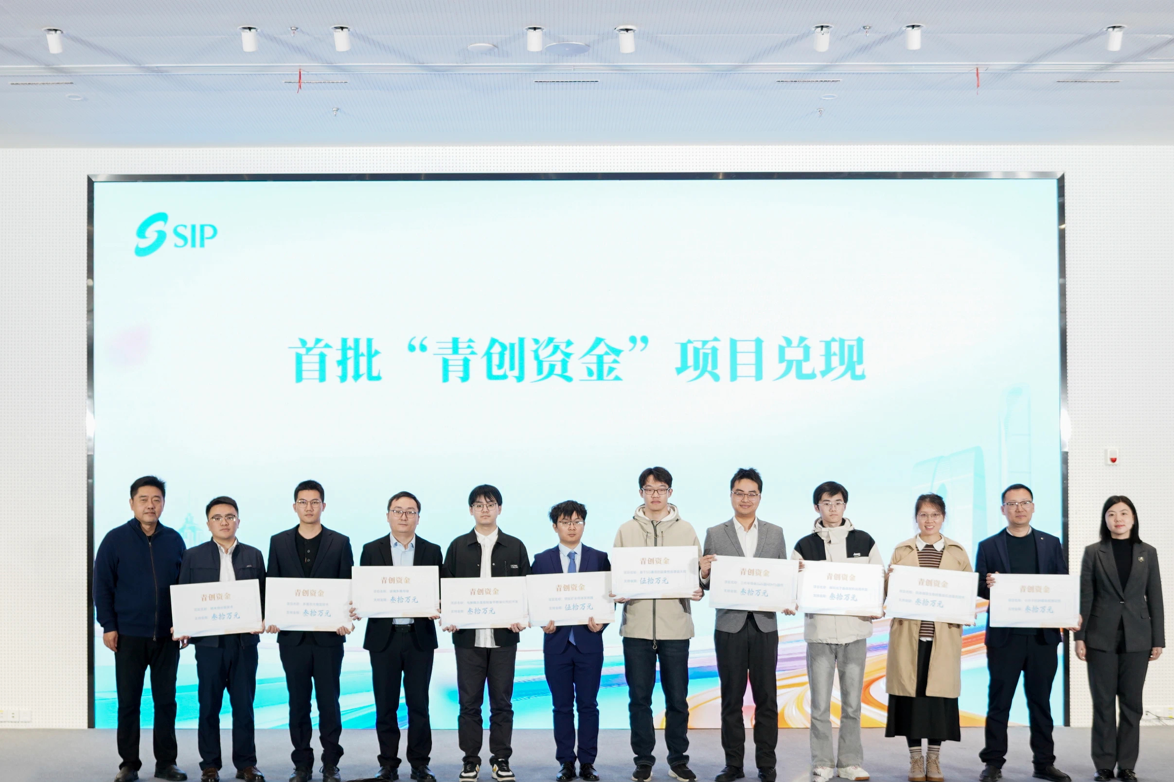 首批獲得支持的10個創新創業項目的青年企業家代表,現場領取“青創資金”。