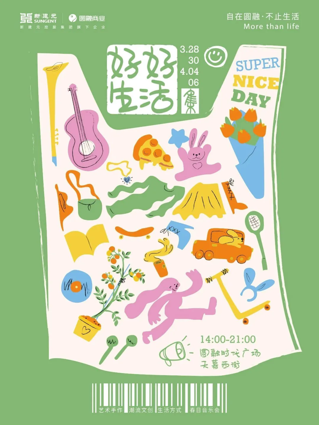 在圓融時代廣場天幕西街,好好生活集匯聚非遺手作、春日小吃、趣味文創等,還有分時段上演的舞臺演出,用動感節奏傳遞滿滿的熱情。