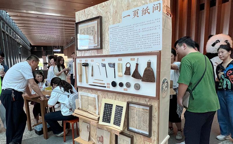 在燦若星河的人類文明中,竹簡、古籍是歷史的見證者,也是文化的承載者。那么面對破損的古籍,又該如何修復、裝幀呢?“一頁紙間”攤位前,古籍修復的“秘密武器”揭開神秘面紗,引得不少市民駐足。而一旁的裝裱區,正有市民在古舊書畫修復裝裱傳承人劉洪波的指導下,體驗著線裝的魅力?!疤K裱技術在北宋時期已基本成型,傳承至今已經成為裝裱藝術四大流派之一!”在劉洪波看來,守護古籍,就是守護閱讀和傳承,將修復、裝裱技藝融入全民閱讀系列活動,也讓市民通過閱讀的延伸,與傳統文化、傳統技藝更加親近。