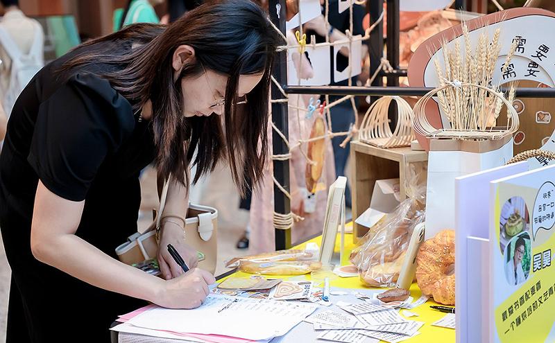 巴斯克蛋糕、窯烤堿水球、德腸面包……在空山手作拆“書”包展位上,書香與面包香完美交融。來往市民只需現(xiàn)場寫下心中關于閱讀與美食的奇思妙想,就能領取一份“書”包,開啟味蕾的神奇之旅??丈绞肿髦骼砣藚顷皇且晃粣坶喿x、懂烘焙的文藝青年,在他看來,麥香與書香有著殊途同歸的默契?!懊姘鼭M足口腹之欲,閱讀充盈精神世界,拆‘書’包將二者有機結(jié)合,為大家提供雙重體驗。在品嘗美味面包的同時,還能盡興閱讀各種書籍,同時獲得精神的補給?!?/p>