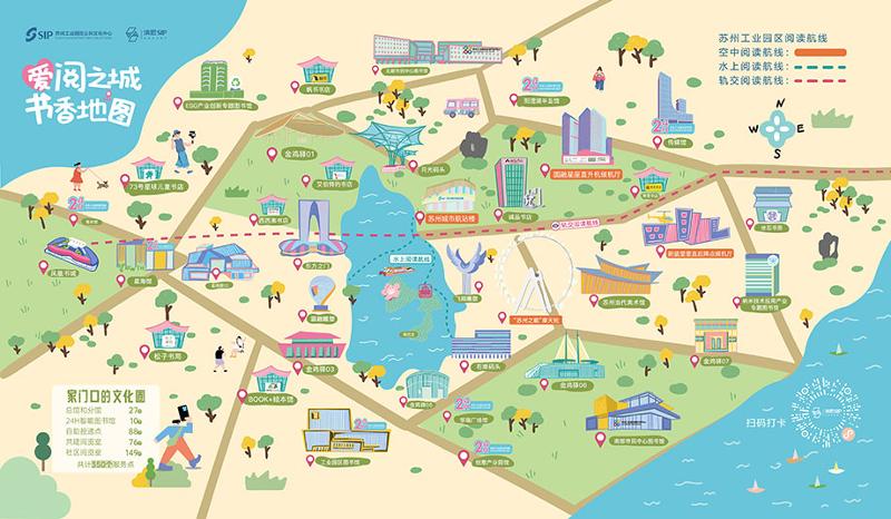 以摩天輪“云端書艙”為齒輪,“空中閱讀”“水上閱讀”和“軌交閱讀”三大閱讀航線同步啟航,從湖面到云端,從地鐵到書站,以開放性、創意性、融合性的新型閱讀空間,三維立體塑造園區流淌的閱讀網絡。其中,空中閱讀航線將在蘇州城市航站樓、圓融星座直升機候機廳、新盛里垂直起降點候機廳為旅客提供數字閱讀服務;水上閱讀航線將閱讀觸角延伸至“金雞湖號”雙體新游船、桃花島游客中心,提供“園區文旅”掃碼聽、休閑讀物隨手閱的文旅閱讀服務;軌交閱讀航線則重點圍繞軌交1號線,串聯沿線品牌書店、24小時圖書館、高客流量站點及文商旅機構的優質閱讀資源。