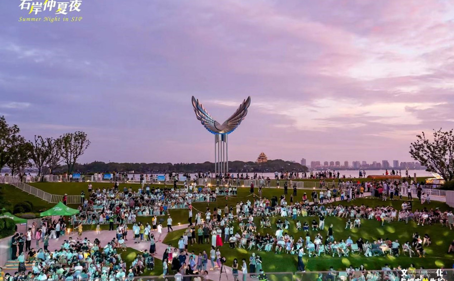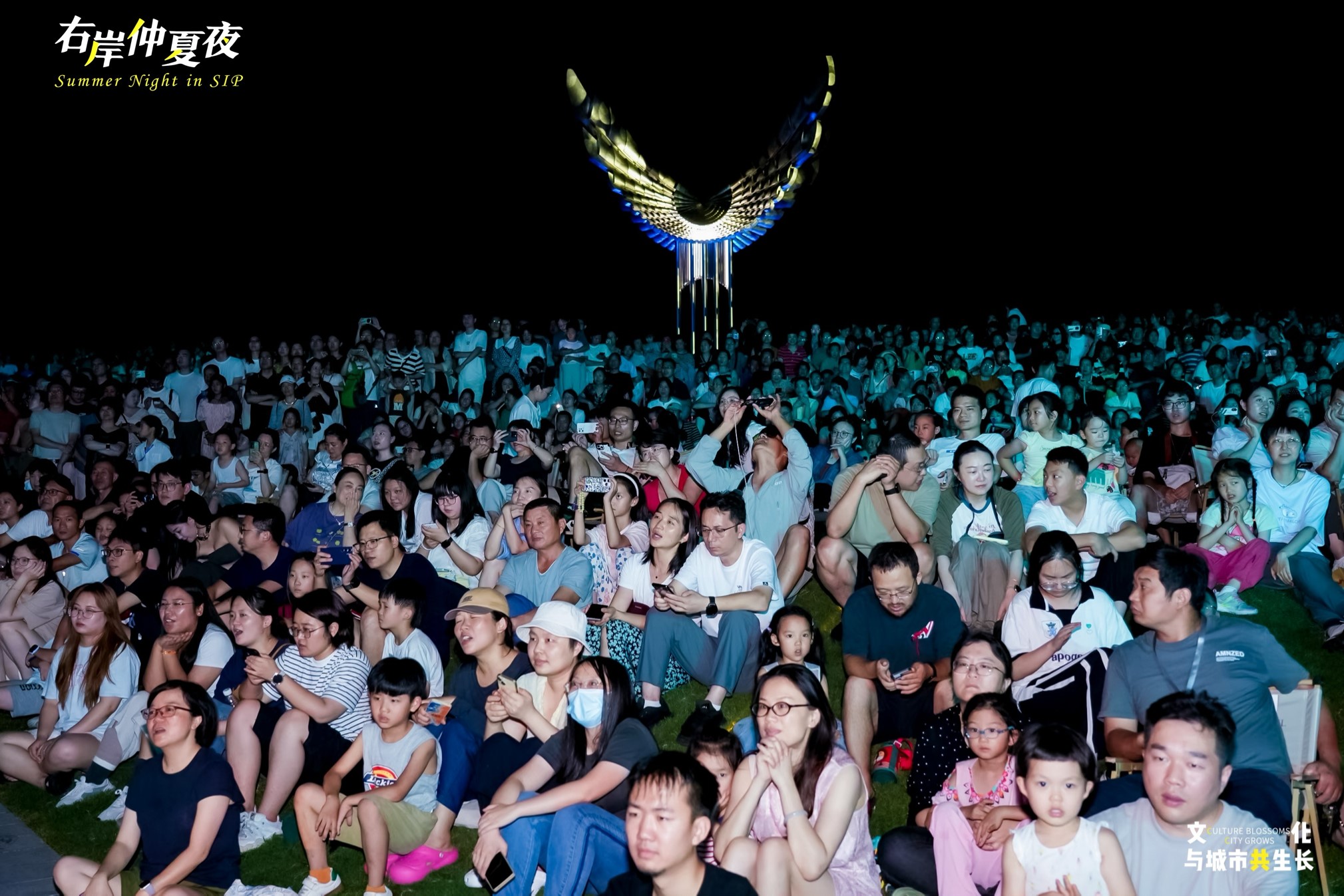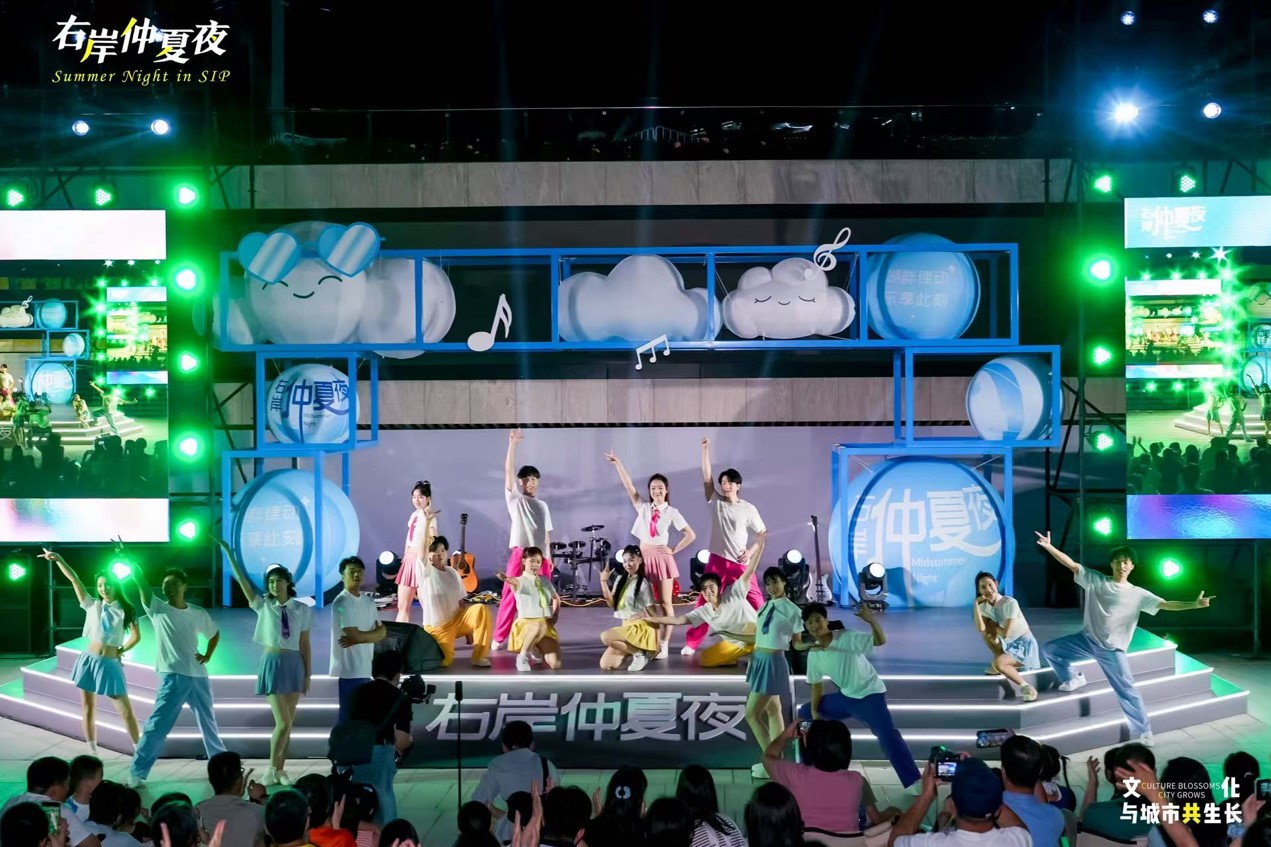 “右岸仲夏夜”推出二期,已成長為園區(qū)嶄新的文化IP,不僅為市民奉上豐盛的精神盛宴,更成為展示區(qū)域文旅魅力的閃亮名片。“我?guī)Ш⒆觼磉@邊散步納涼,沒想到碰上這么精彩的演出。”市民趙女士說道,“現(xiàn)在的園區(qū)既有煙火氣,又充滿藝術(shù)范兒,周末遛娃、全家放松再合適不過。”“全民、全齡、全域、全時(shí)”的理念,讓藝術(shù)融入湖畔晚風(fēng),成為群眾夏夜消暑納涼的好去處。