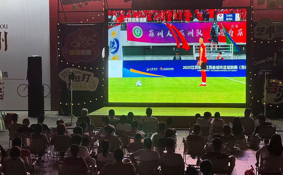 “進球啦,蘇州隊太棒了!”隨著蘇州球員一腳踢破泰州隊的大門,聚集在688藝術潮流廣場觀看“蘇超”的市民瞬間激動起來,周邊的市集商家也鼓起掌來。而此時,一杯應景的特調則成為不少球迷的慶祝方式。