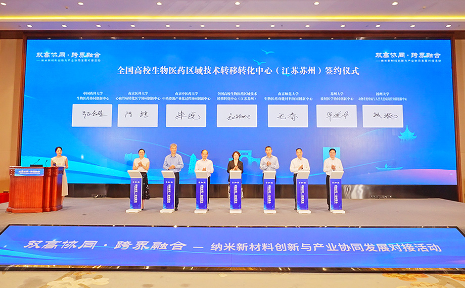 9月5日,江蘇教育界與產(chǎn)業(yè)界對(duì)話對(duì)接——“雙高協(xié)同?跨界融合”納米新材料創(chuàng)新與產(chǎn)業(yè)協(xié)同發(fā)展對(duì)接活動(dòng)在蘇州工業(yè)園區(qū)舉行。全國(guó)高校生物醫(yī)藥區(qū)域技術(shù)轉(zhuǎn)移轉(zhuǎn)化中心(江蘇蘇州)(以下簡(jiǎn)稱“蘇州生物醫(yī)藥分中心”)深度參與,牽手6校共建協(xié)同創(chuàng)新中心,進(jìn)一步整合區(qū)域創(chuàng)新資源,打通“雙高協(xié)同”合作通道,推動(dòng)更多生物醫(yī)藥創(chuàng)新成果從“實(shí)驗(yàn)室”走向“生產(chǎn)線”。