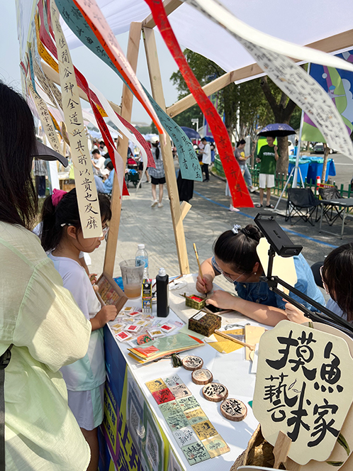 當(dāng)天,來(lái)自區(qū)內(nèi)高校、企業(yè)帶來(lái)非遺作品、輕食飲品、休閑文旅、運(yùn)動(dòng)裝備、文創(chuàng)周邊等,共同組成了多元業(yè)態(tài)匯聚的湖畔市集,吸引了不少市民停留駐足、拍照打卡。