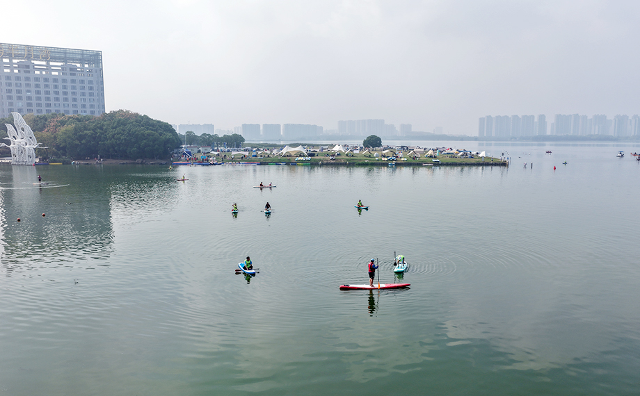 在水上項(xiàng)目體驗(yàn)區(qū),通過(guò)前期線上預(yù)約的市民穿戴好裝備,在教練的指導(dǎo)下逐步掌握平衡技巧和御水技術(shù),在前行中感受秋日獨(dú)墅湖畔的都市風(fēng)光與自然之美。
