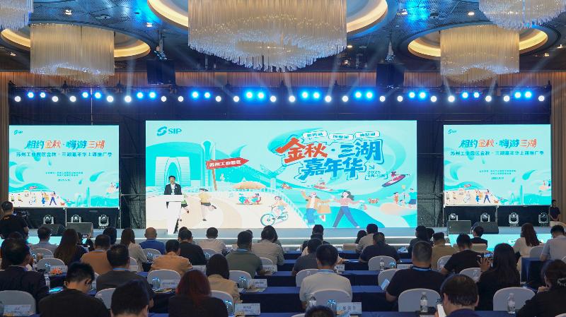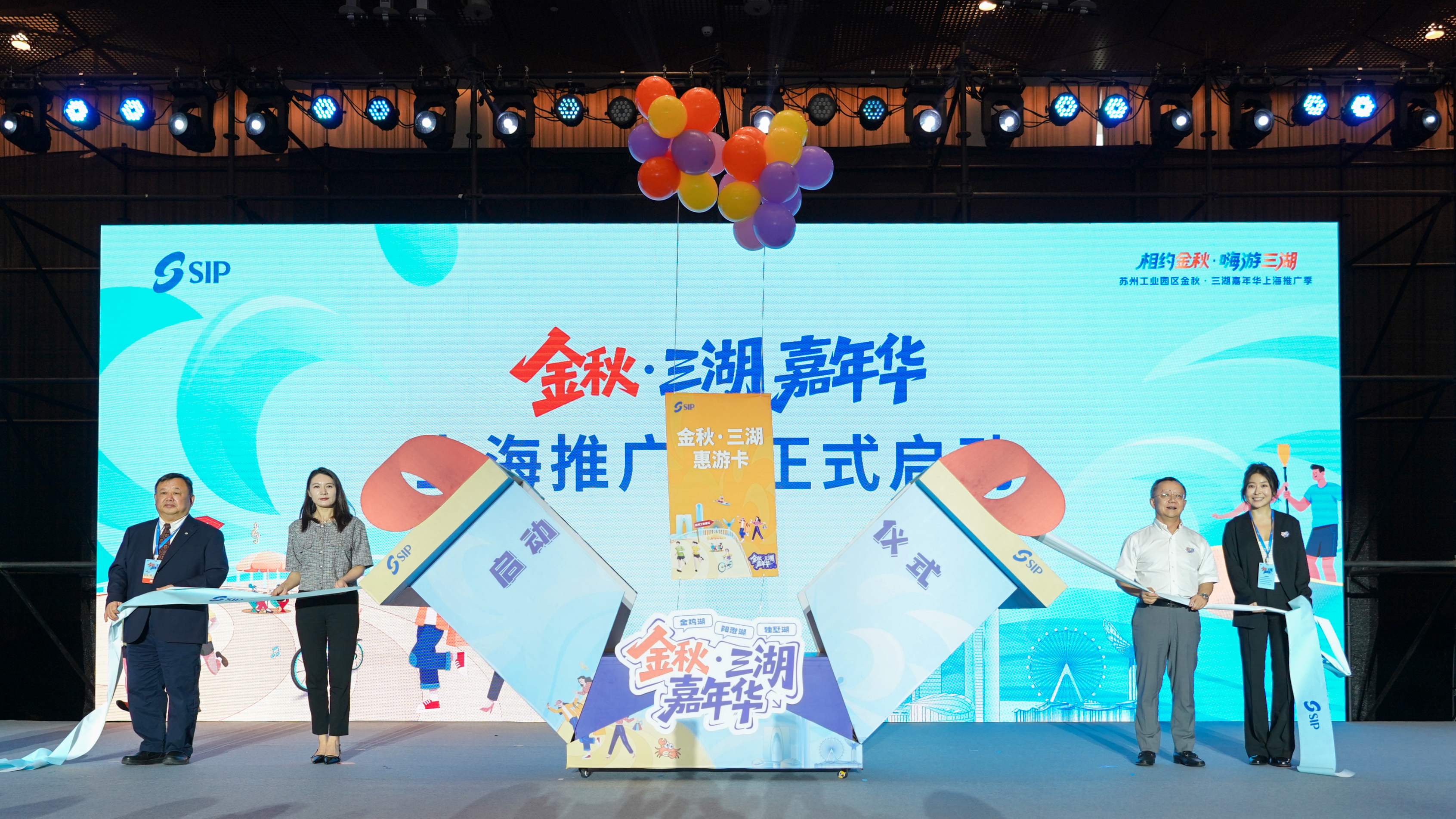 9月19日,由蘇州工業園區文體旅游局、園區商務局共同主辦的“金秋?三湖嘉年華”上海推廣季在上海中心大廈舉辦。活動以“相約金秋?嗨游三湖”為主題,通過精彩的文旅推介和豐富的互動環節,充分展現園區三湖的獨特魅力,并推出多項惠民禮遇,向上海市民發出誠摯的秋日邀約。園區黨工委委員、管委會副主任、宣傳部部長朱江出席活動。上海市旅游行業協會及各區旅游協會的會長代表,上海錦江、春秋、中青旅等頭部旅行商負責人,攜程、同程、美團、飛豬等文旅電商企業代表,多位文旅、生活類知名KOL,以及上海知名研學機構、旅游俱樂部、招商合作單位、重點合作企業代表等參加活動。