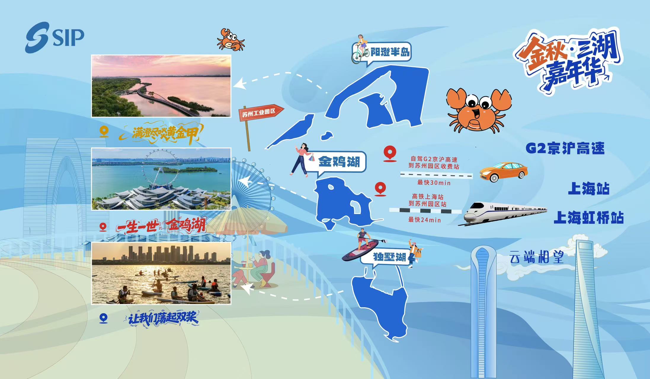 誠如SunnyYan所言,園區(qū)三湖既有臨水親民的共性,又有獨(dú)具特色的風(fēng)情。此次“金秋·三湖嘉年華”,園區(qū)除了在陽澄湖畔打造“滿澄盡啖黃金甲”主題系列活動,還充分彰顯金雞湖、獨(dú)墅湖的魅力。