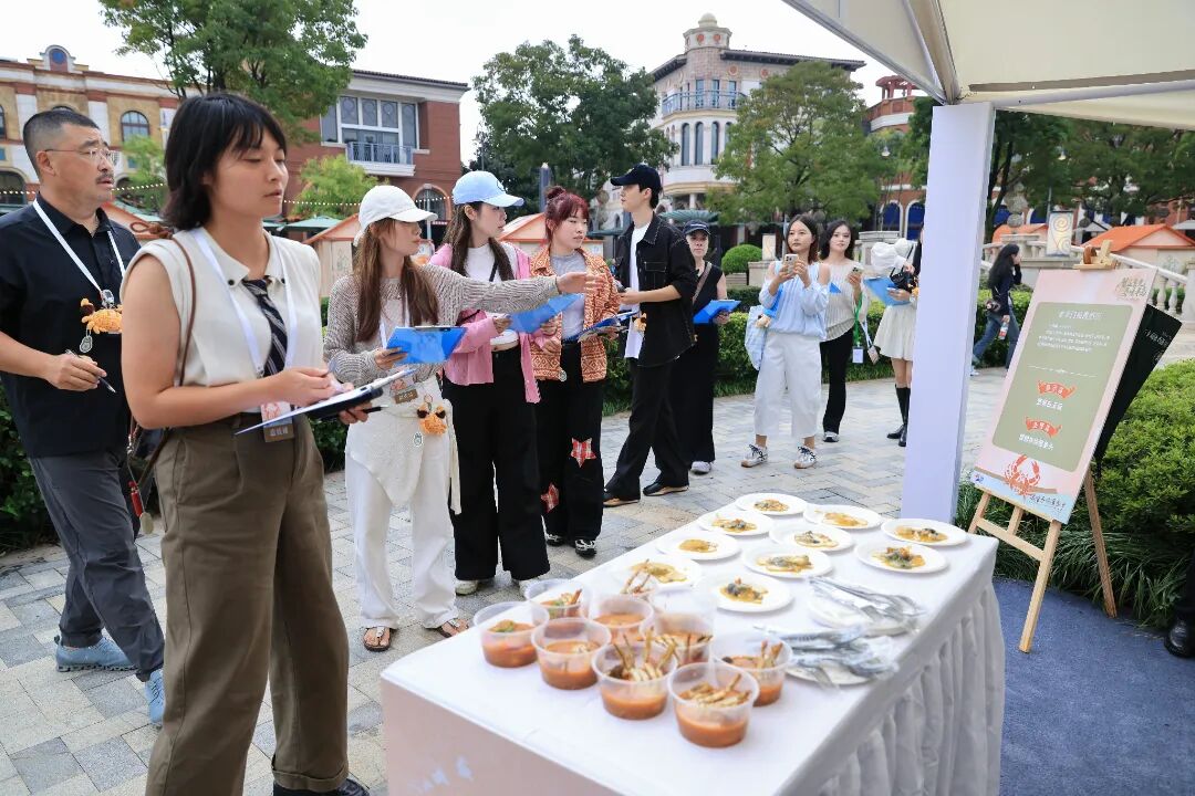 除了廣受市民游客青睞的“蟹味美學(xué)”展示菜區(qū)域,河對(duì)岸的“澄心至味”品鑒菜區(qū)域更是一片熱鬧非凡的景象。