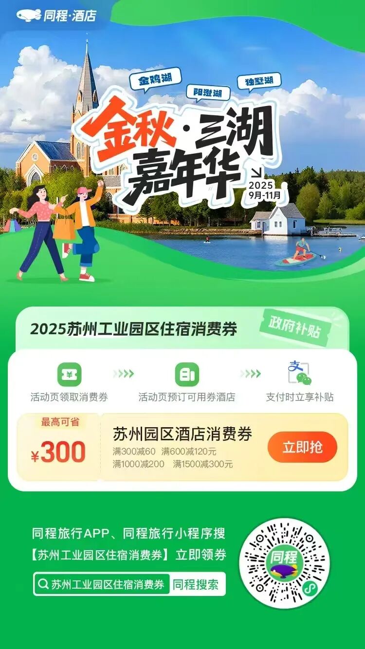 三大湖區(qū)、百項(xiàng)活動(dòng)、千家商戶、十萬(wàn)好禮、億元讓利——在蘇州工業(yè)園區(qū),一場(chǎng)精心策劃的金秋商旅文盛宴正等你入席。